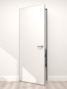 Скрытые двери имеют механизмы открывания, такие как петли или скрытые магнитные замки, которые не видны снаружи. Они могут открываться как наружу, так и внутрь, в зависимости от конструкции и места установки.