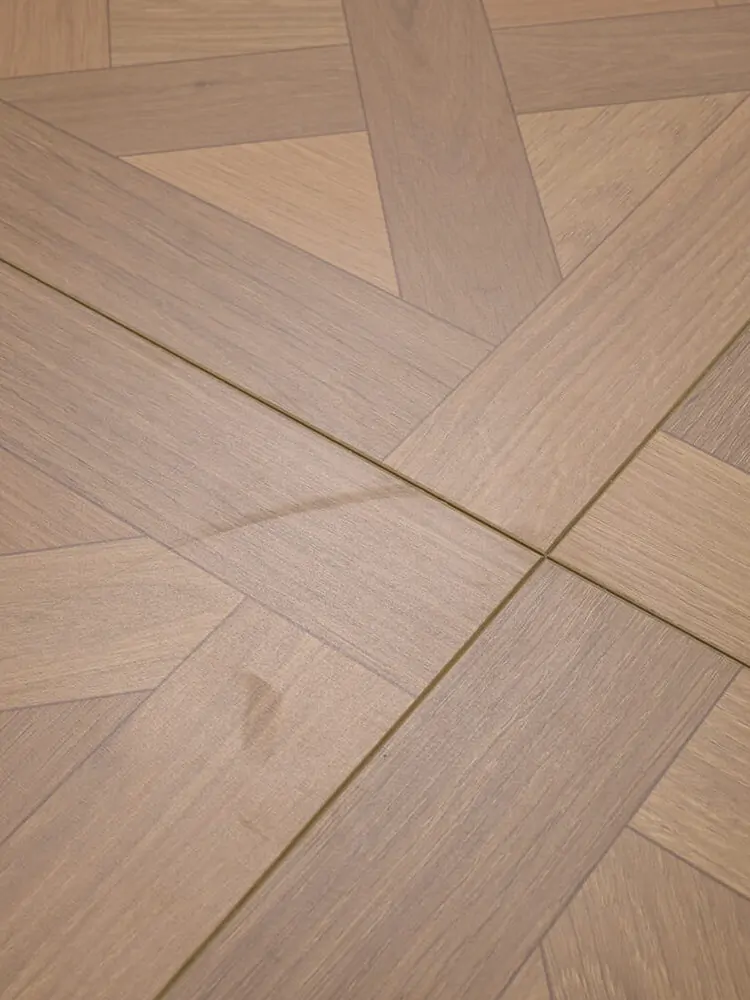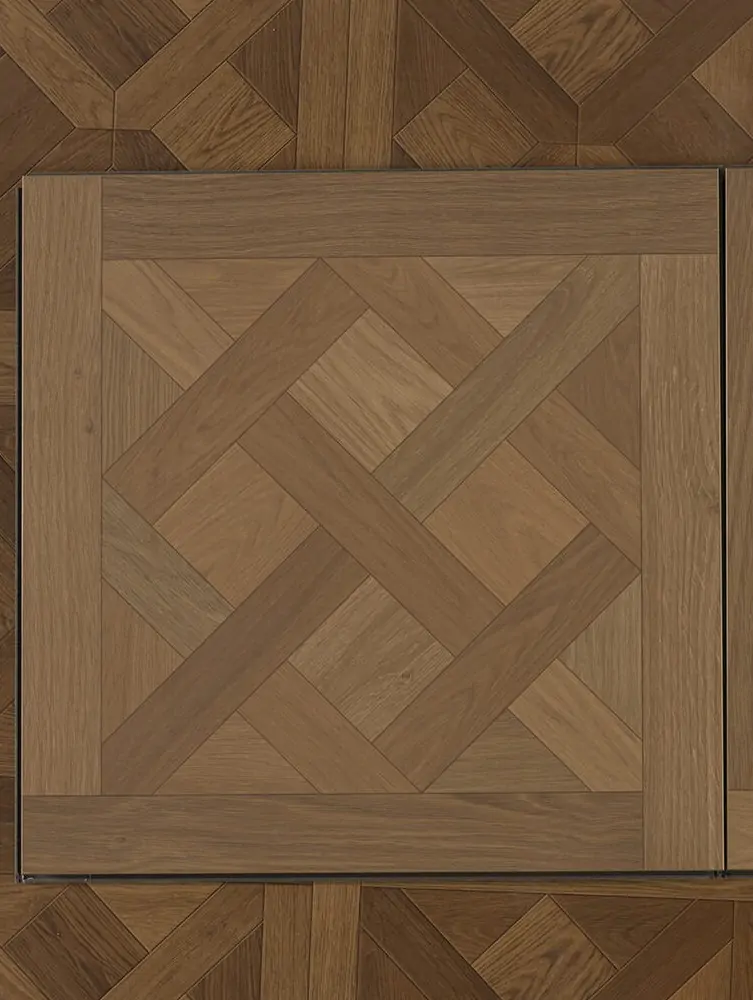 Матовый художественный ламинат из премиальной линейки, стилизован под модульный паркет.